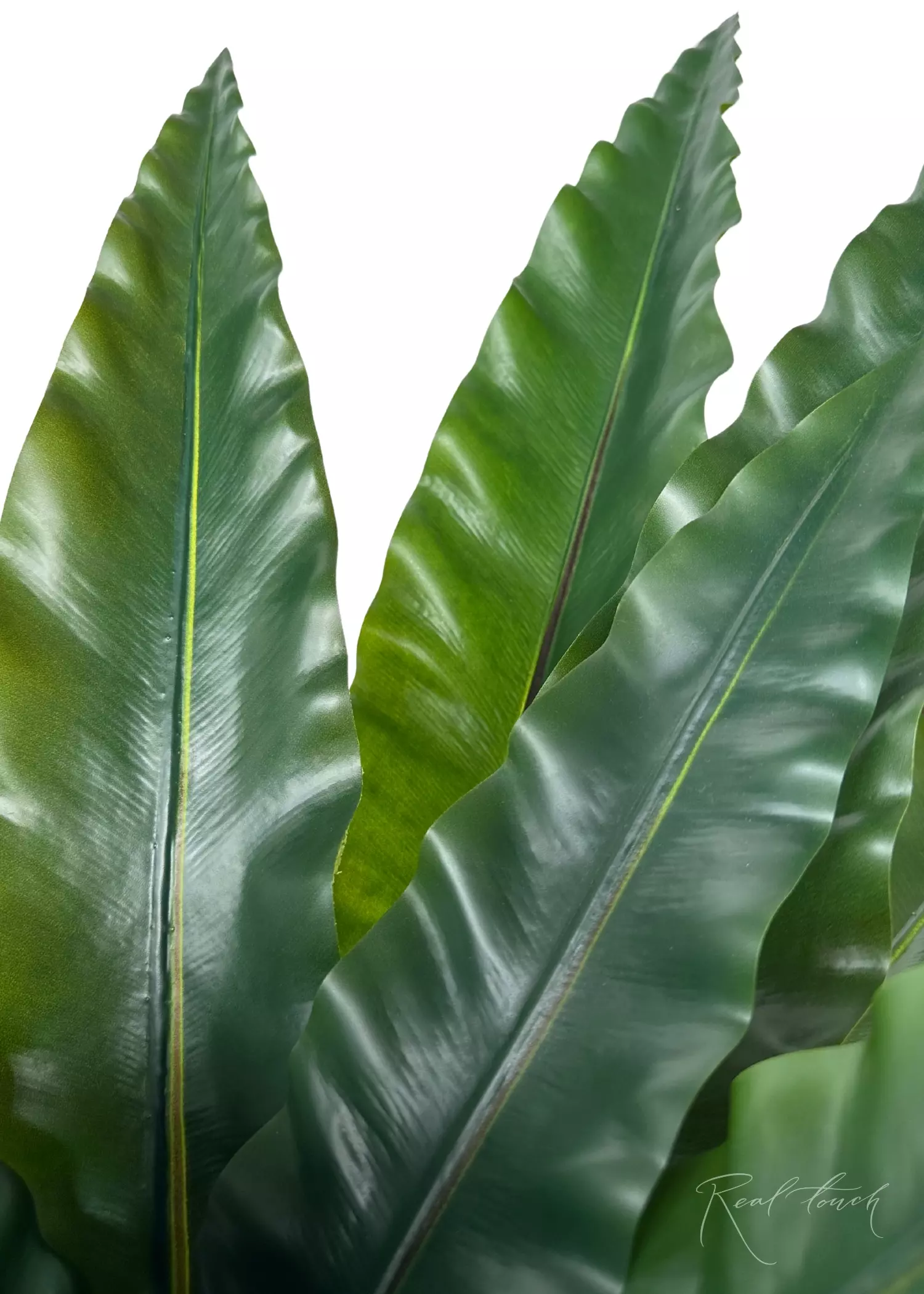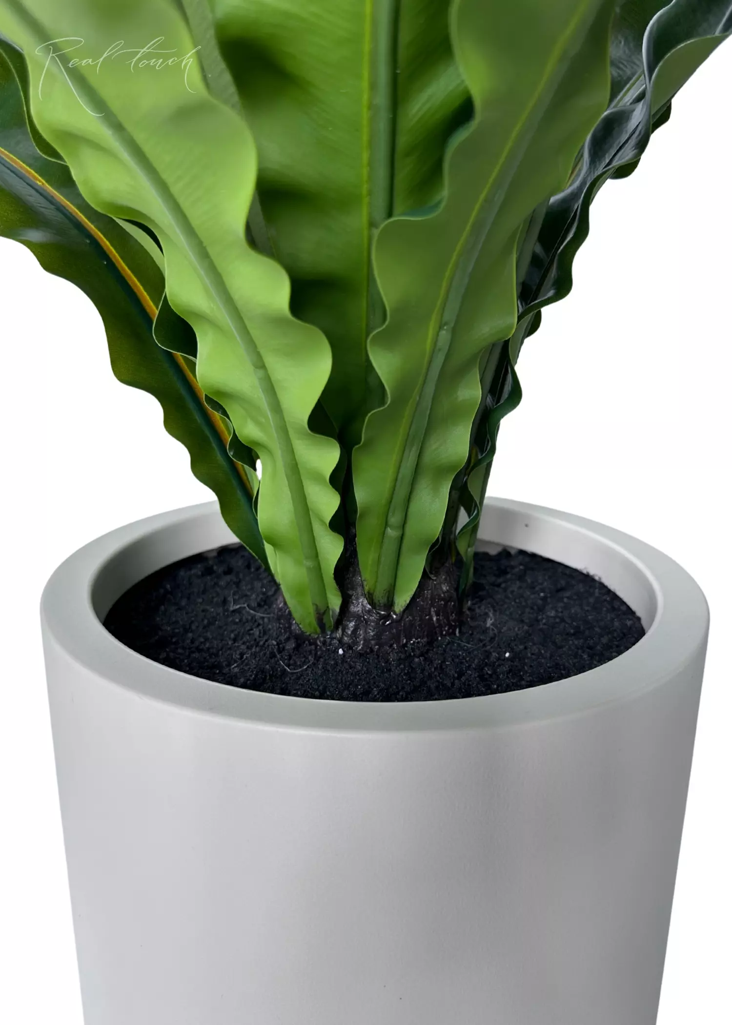 Asplenium in a decorative planter of 85 cm is similar in quality to our anthurium bushes. The material is pleasant to the touch, the leaves are worked out and look very realistic. In general, these bushes resemble our silicone bushes in shape, but they are a little easier to work with and easier to straighten after deformation. There are two sizes available now, 70 cm and 85 cm. The material is a waterproof cloth with a high-quality sheet molding. Pay attention to the correct straightening, as the leaves have a wrong side (technical). They have a wire base in the sheets, which allows you to straighten the asplenium as needed.