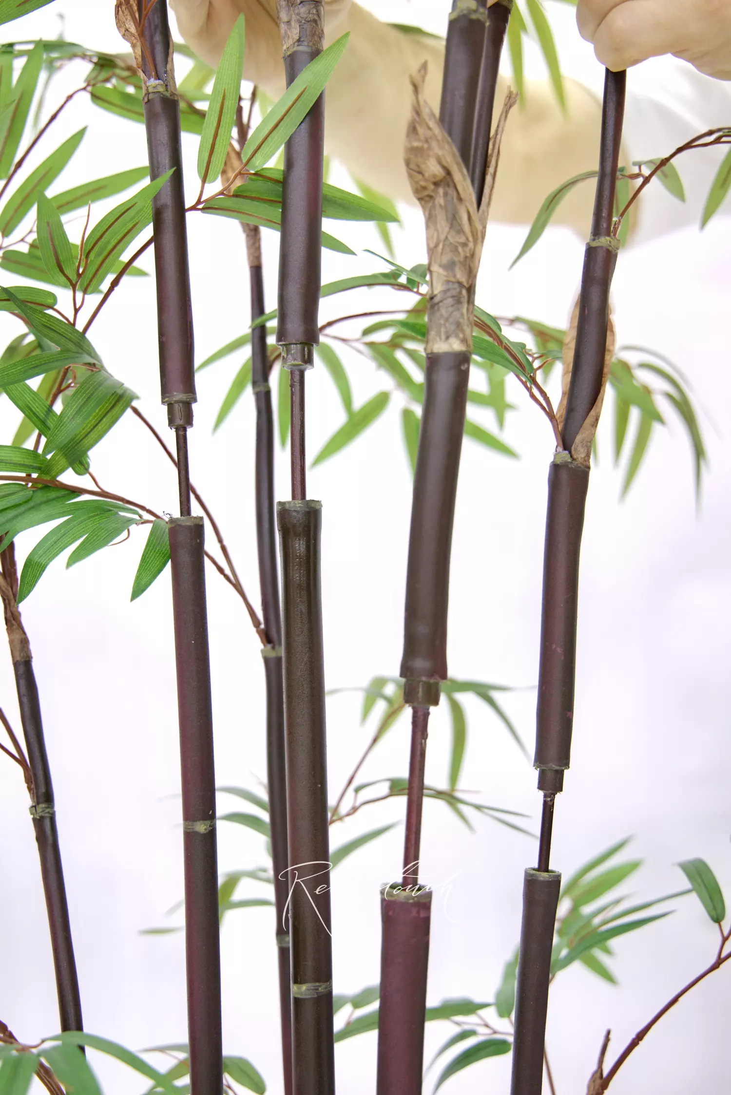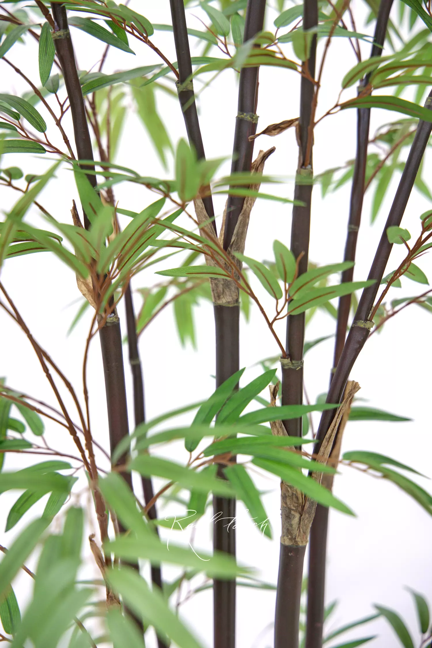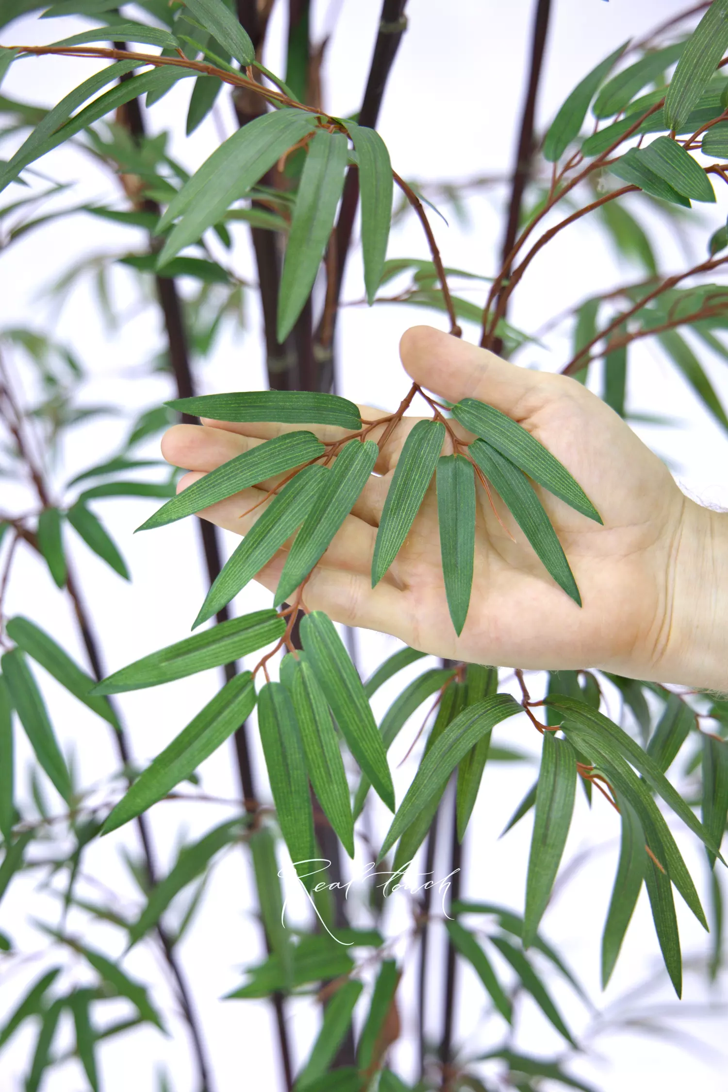 Thin, long leaves are made of high-quality textile and look incredibly elegant and airy. Brown stems make bamboo look more vivid and austere. Every branch has a wire inside and can be easily shaped. The trunk is soft and pleasant to touch. This model is assemblable.